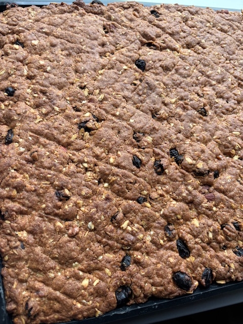 Heerlijke plaatkoek met havermout, rozijnen en kaneel! En zo gemaakt en dan smullen met elkaar.